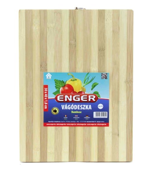 krájecí deska z bambusového dřeva obdelníkového tvaru s kovovým očkem na zavěšení rozměry 40 x 30 a výška 1,8 cm EAN 5999036012055 prečítať celé