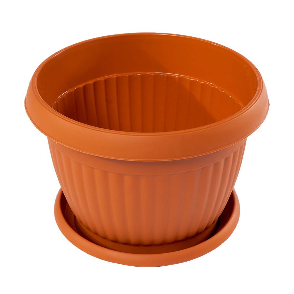 ozdobný plastový květináč s podmiskou v cihlové barvě průměr 13 a výška 10 cm, průměr podmisky 14 cm vyrobeno v EU EAN 6421937020703 prečítať celé