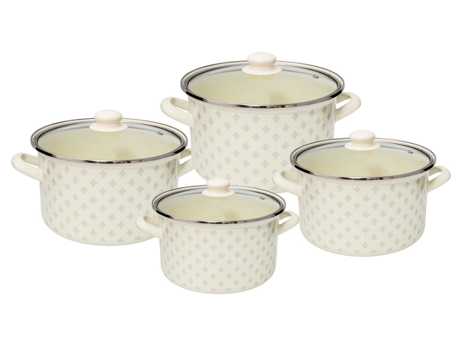 sada smaltovaných hrnců se skleněnou poklicí sada obsahuje 4 hrnce a 4 poklice průměr 16 cm / 18 cm / 20 cm / 22 cm EAN 0000043604104 prečítať celé