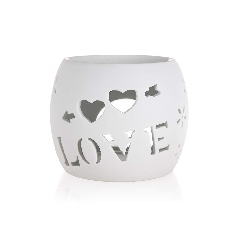 porcelánová aroma lampa 10.5 x 10.5 cm v matné bílé barvě s prořezávaným dekorem Love má v dolní části prostor pro čajovou svíčku a nahoře mističku pro vonný olej nebo vonný vosk po zapálení čajové svíčky se postupně uvolňují vůně z oleje nebo vosku, které provoní interiér vašeho bytu čajová... prečítať celé