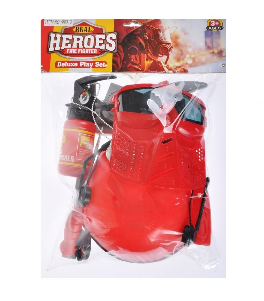 Výhody produktu: Každý hasič musí být vybaven odpovídajícím vybavením. Sada MEGA CREATIVE vám poskytne všechny prvky, které potřebujete, abyste byli připraveni na akci ohně! Sada obsahuje: helmu, hasicí přístroj, kladivo, krátké vlny, páčidlo, hasičský odznak-náhrdelník .. Vše z plastu. Určeno pro děti od 3 let. Rozměry balení (D x V x H) [cm]: 31,5x42x13. Hmotnost produktu {kg} 0,40 kg, baleno v tašce s euro závěsem