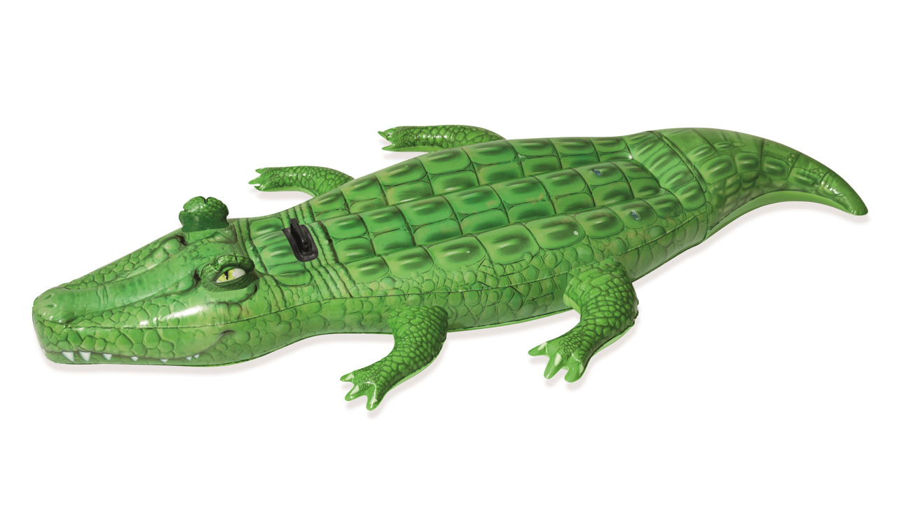 Nafukovací krokodýl s plastovým úchytem je vhodný pro hru ve vodě. Díky plastovému madlu je lehké udržet se na hřbetě krokodýla a zažít spoustu legrace!Krokodýl je vyrobený z kvalitního materiálu a v atraktivním barevném vzhledu.Rozměr:203x117cm.Součástí balení jsou náplasti na drobné opravy....