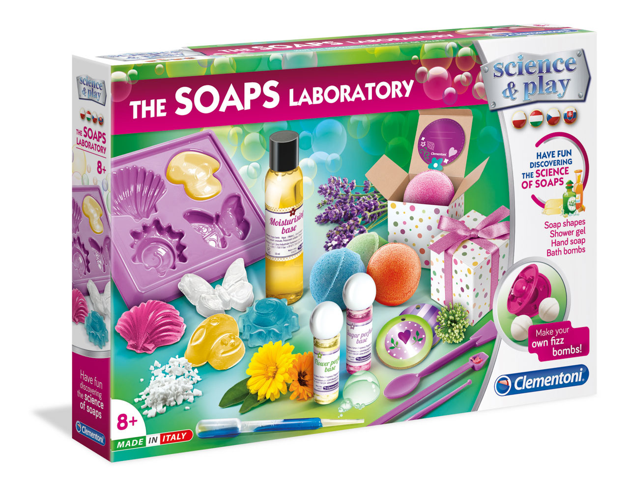 S touto fantastickou sadou CLEMENTONI Dětská laboratoř-Výroba mýdel si užijete spoustu zábavy při výrobě mýdel, sprchového gelu a voňavých koupelových bomb. Nebojte se experimentovat. Smíchejte vůně a změkčující přísady a vytvořte tak svůj jedinečný výrobek. Ilustrovaný manuál povede vaše dítě krok za krokem, takže si může hrát naprosto bezpečně. Sada pomáhá rozvíjet manuální dovednost a kreativitu. Rozměr balení: 41,8 x 27,8 x 6 cm. Váha: 1,05 kg. Věk: 8+