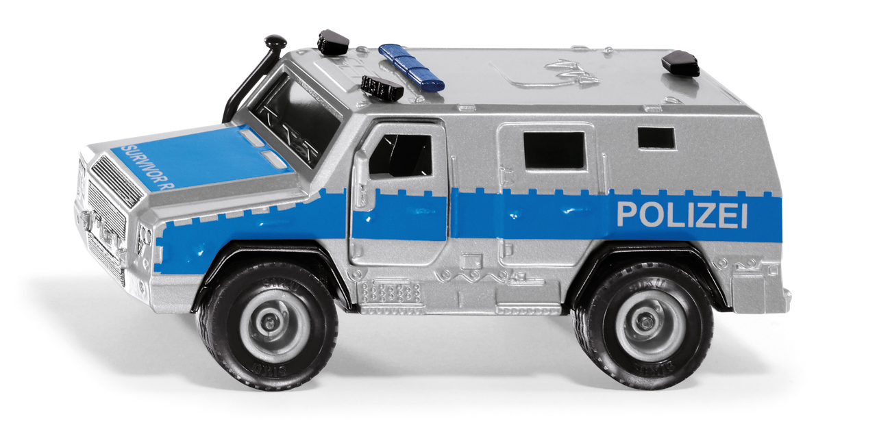 SIKU Super – policejní obrněný vůz Survivor. Policejní obrněný vůz Survivor R přepravuje speciální jednotky na místo nasazení. V obrněném vozidle vybaveném výzbrojí je prostor pro jedenáct osob. Speciální ventilační systém chrání cestující před válečnými agenty. Dveře řidiče, spolujezdce a zadní...