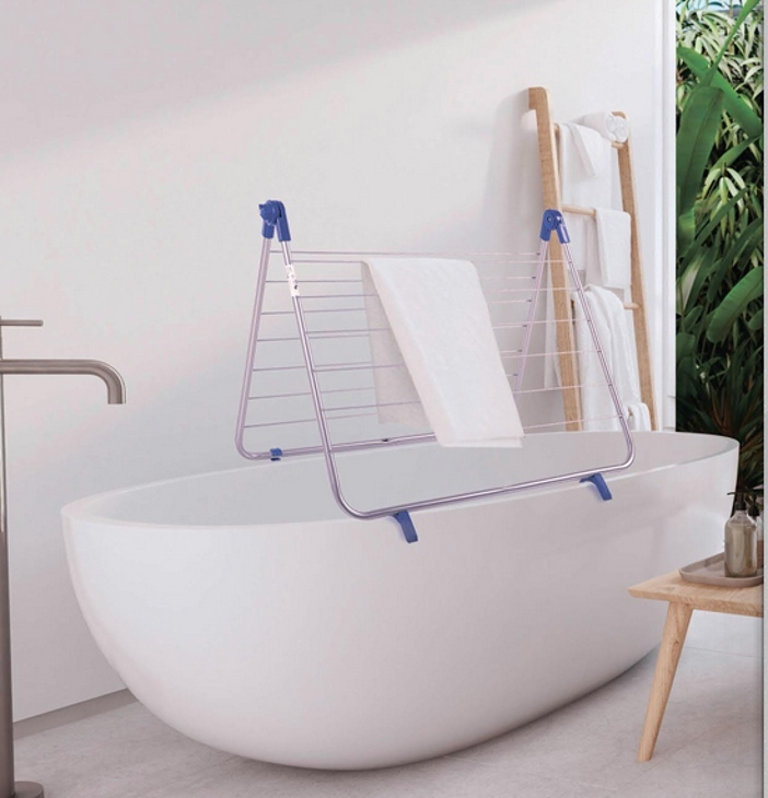 Kovový sušiak na vaňu je ideálnym riešením, ako efektívne sušiť bielizeň, bez toho aby vám zaberalo miesto v byte. Vďaka kompaktným rozmerom 59x68x5 cm ľahko upevníte sušiak na okraj vane a získate tak stabilné miesto pre zavesenie mokrej bielizne či uterákov.
