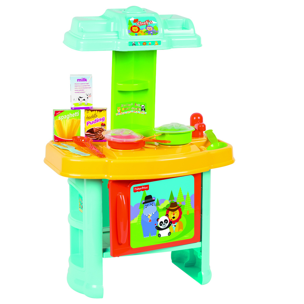 Co bude dnes dobrého? Dětská plastová kuchyňka je jako dělaná pro malé kuchařky a kuchaře! Vyrobena z odolného a pevného materiálu v licenci Fisher Price. Kuchyňka je vybavena otevíracím úložným prostorem. Včetně zobrazeného příslušenství. Věk: 24m+. Rozměr: 64 x 42 x 27 cm. Váha: 1,88kg.