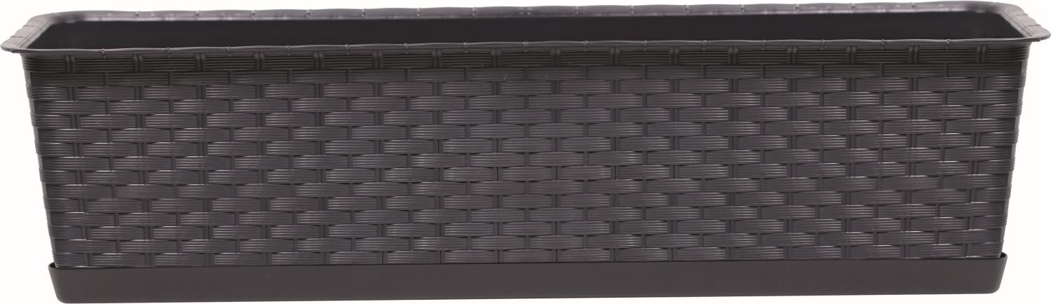 Stylový truhlík RATOLLA v imitaci ratanu v antracitové barvě, s miskou. Je vhodný pro celoroční venkovní i vnitřní použití na balkón, terasu i zahradu.Truhlík je vyroben z vysoce kvalitního, lehce omyvatelného materiálu, odolného vůči mrazu a povětrnostním vlivům.Materiál - plast. Rozměry - délka...