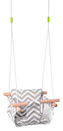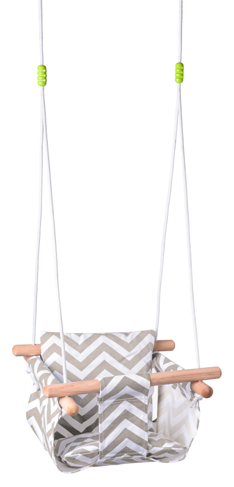 Hojačka je vyrobená z masívneho, hladko brúseného dreveného rámu, ktorý zaručuje pevnosť a stabilitu. Textilné sedadlo z kvalitnej 100 % bavlny v príjemnom sivom odtieni je mäkké a zároveň odolné. Súčasťou hojdačky je odnímateľný vankúšik, ktorý zabezpečuje maximálne pohodlie počas sedenia a odpočinku vášho dieťaťa. Môžete ju jednoducho zavesiť vďaka kovovým krúžkom a pevným lanám, ktoré sú nastavované pomocou lanových zámkov pre ideálnu výšku. Vďaka univerzálnemu dizajnu sa hojdačka hodí ako do interiéru, tak na záhradu.