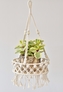 Ručně vyráběný macramé závěsný květináč. Materiál: bavlněné lano, MDF deska Rozměry: délka celkem 55 cm výška květináče 6,5 cm průměr 25,5 cm průměr dna 25,5 cm prečítať celé