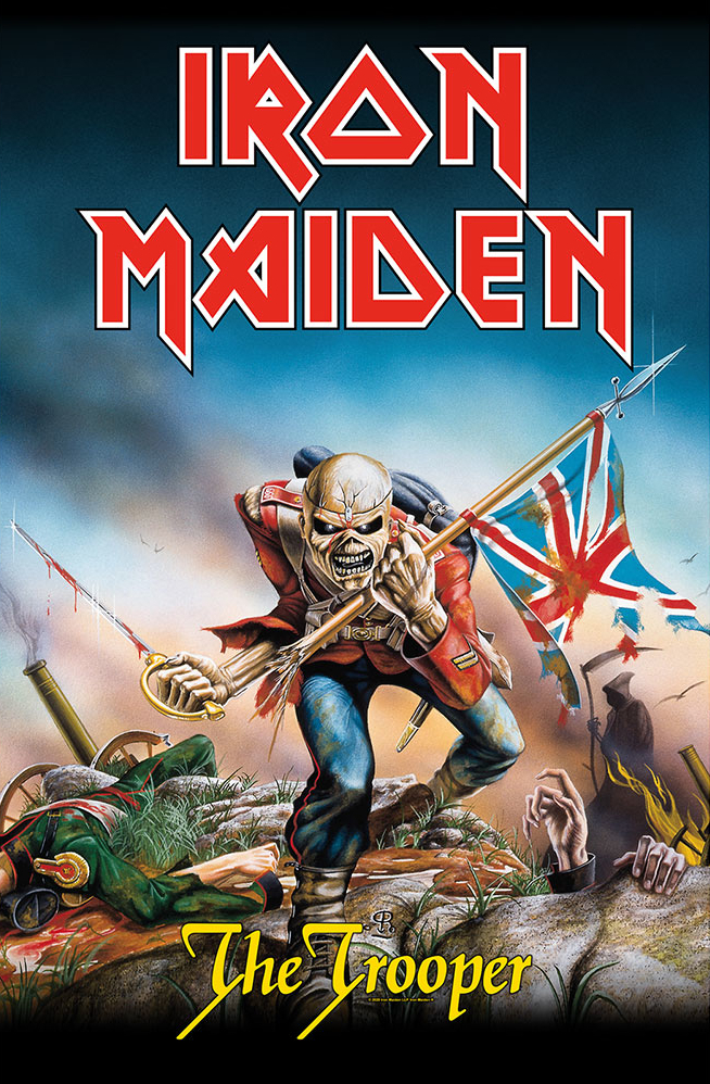 Plakát v textilním provedení s motivem skupiny Iron Maiden.
