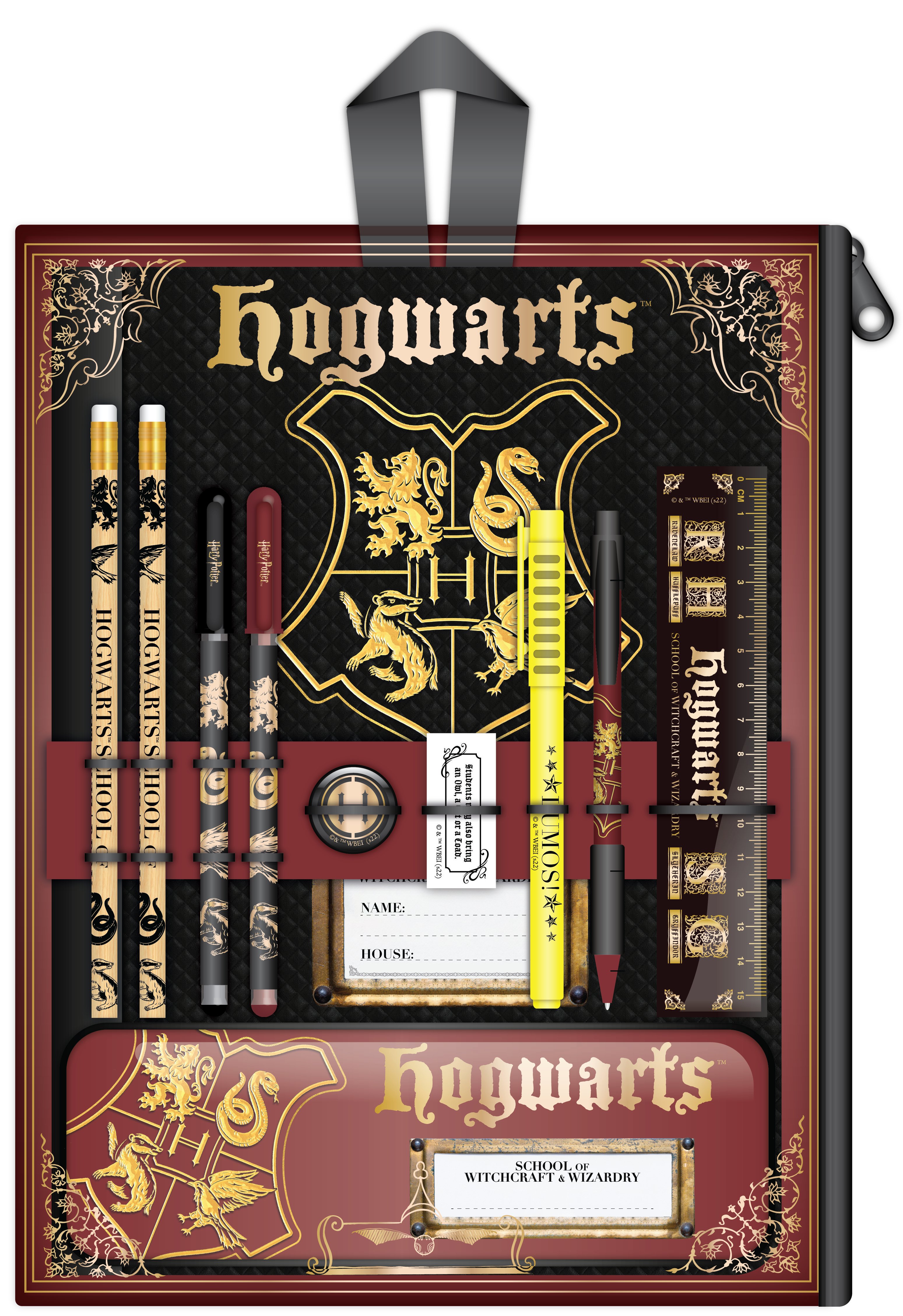 Sada kouzelnických psacích potřeb pro všechny studenty nejen z Bradavic.Sada obsahuje:Pouzdro s úložným prostoremZápisníkGelová peraGumuZvýrazňovačPlechový penálPravítko 15 cmOřezávátko2 tužkyPero prečítať celé