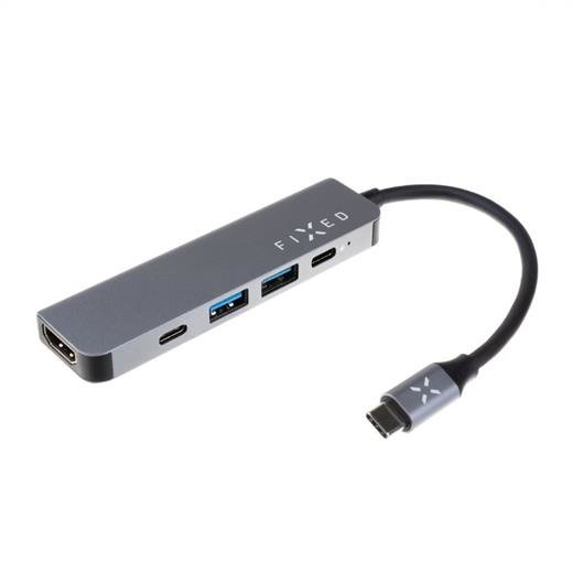FIXED HUB Mini pro notebooky a tablety, 5-portový hliníkový, šedý