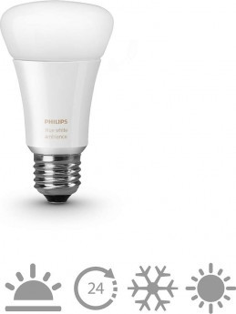 Žárovka Philips HUE LED white pro patice E27 ve tvaru A19 s bílou barvou světla s maximálním příkonem 1 x 9,5 W energetické třídy A+ a životností až 25 let. Má okamžitý 100 % výkon. Teplota světla je v rozmezí 2200K – 6500K, tedy od hřejivého bílého po chladné, jasné denní světlo. Světlo tak...