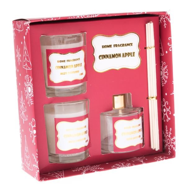Vonný difuzér + 2x vonná svíčka - skořice, jablko, 1/12