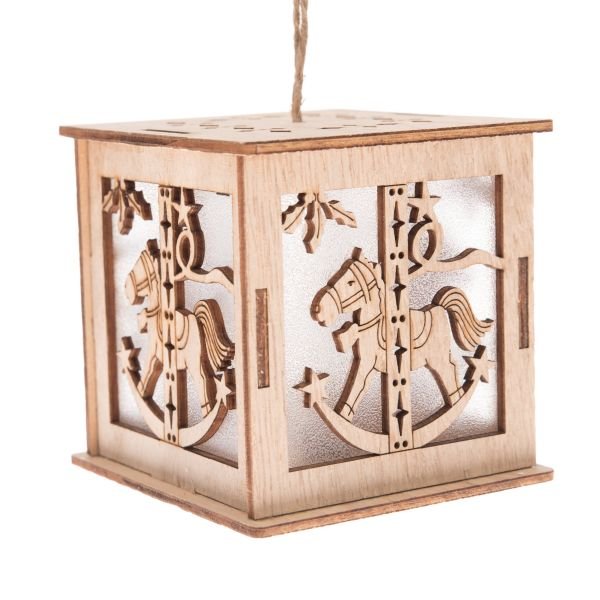 Dřevěná závěsná lucerna s LED světlem, 12/96