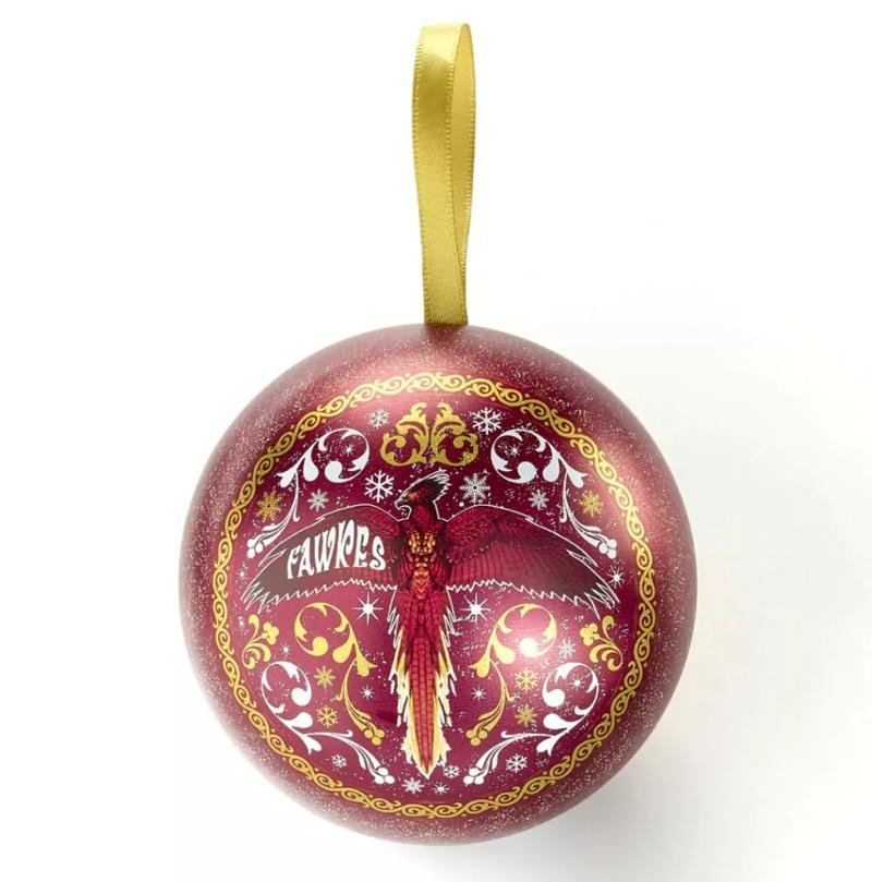 Vánoční ozdoba, kterou si nejen zavěsíte na stromeček, ale uvnitř najdete i překvapení. Uvnitř ozdoby se skrývá náhrdelník s fénixem, kterého znáte z filmů o Harrym Potterovi. Oficiálně licencováno. Rozměr ozdoby: 8 x 8 x 8 cm. Řetízek náhrdelníku je dlouhý 40 cm, s možností nastavit o dalších 5 cm.
