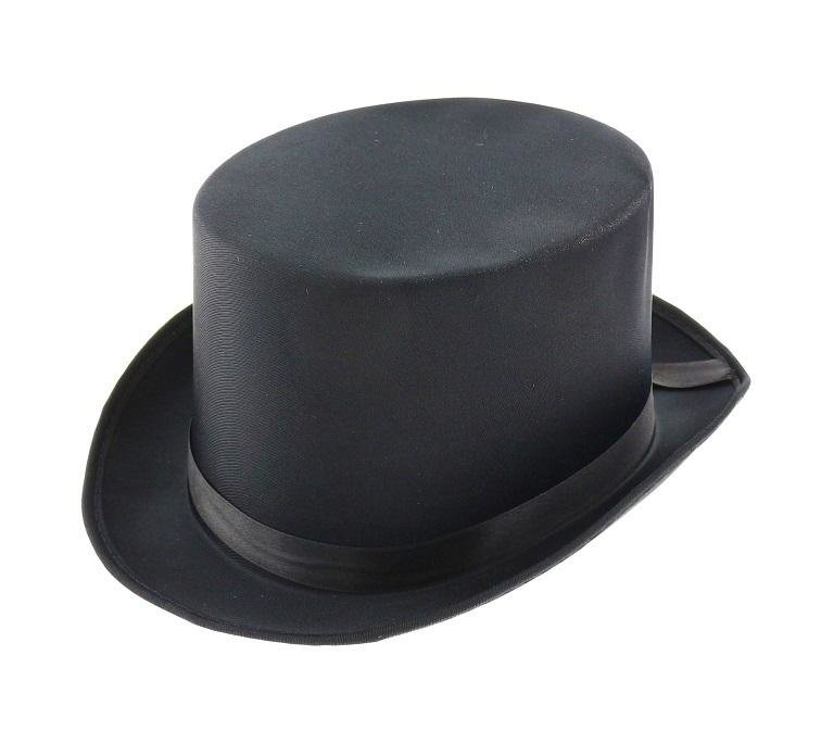 Cylinder CZARNY, gładki Długość: 30 cm Szerokość: 25 cm Obwód: ok. 60 cm Wysokość: ok. 12 cm Cylinder wykonany jest z przyjemnego w dotyku materiału w kolorze czarnym. Na dole ronda znajduje się czarna wstążka. Sztywny kapelusz czarny o wysokiej główce i niewielkim rondzie, noszony był w XVIII...