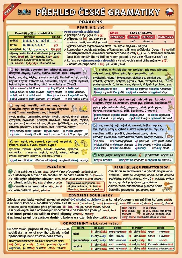 Ucelený přehled české gramatiky nově ve větším formátu a obohacený o ilustrace. Obsahuje kapitoly pravopis, tvarosloví a skladba. Přehled je vhodný pro studenty základních a středních škol. prečítať celé