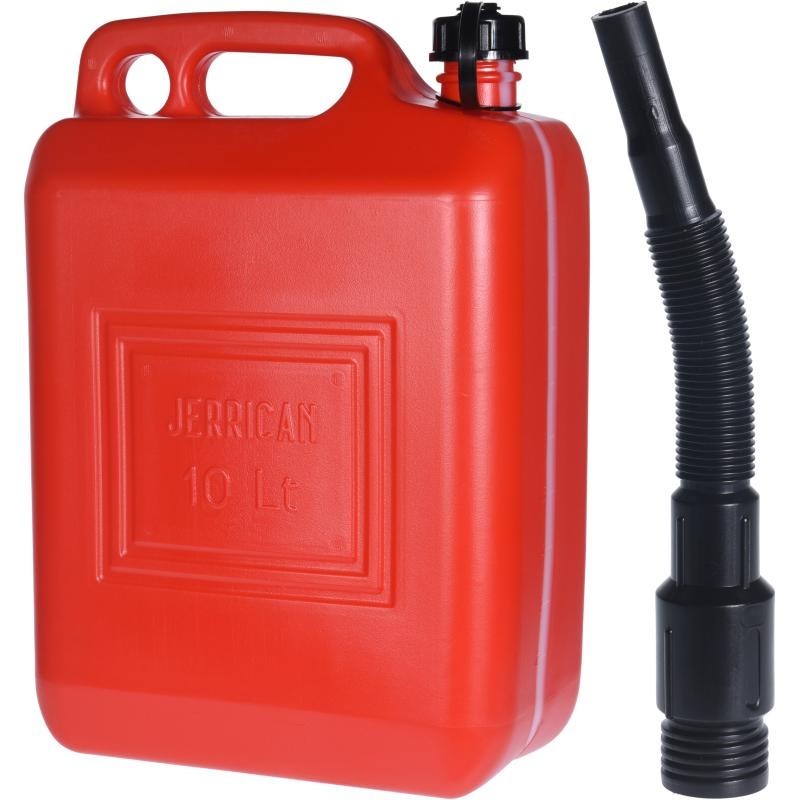 JERRY CAN, POLYETHEEN, SIZE: 265X145X375MM, CONTENT 10 LITER, OPENING 34MM, RED COLOUR, WITH A SCREW CAP WHICH IS ATTACHED WITH A PP STRING, WITH SEPARATE SAFETY TRAP FUNNEL, UN CERTIFIED, FOR FUEL ONLY, ALL DETAILS FROM SUPPLIER AND WITH EXTRA LABEL WITH AM/63 ADDRESS, MASTER CARTON IS MASTER...