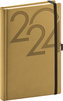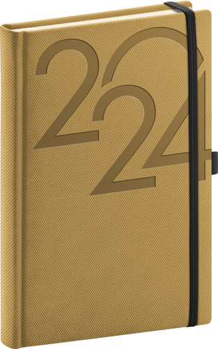 Elegantní zlatý denní diář Ajax 2024 v rozměru A5. Povrch s jemnou strukturou připomínající výbrus diamantu je ideální pro všechny typy ražeb. Diář má zakulacené rohy, poutko na tužku a elastickou gumičku, sloužící k pevnému uzavření. • kalendárium od prosince 2023 • měsíční plánovací kalendář...
