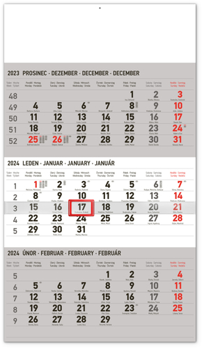 3měsíční kalendář standard šedý 2024 - nástěnný kalendář (česky)