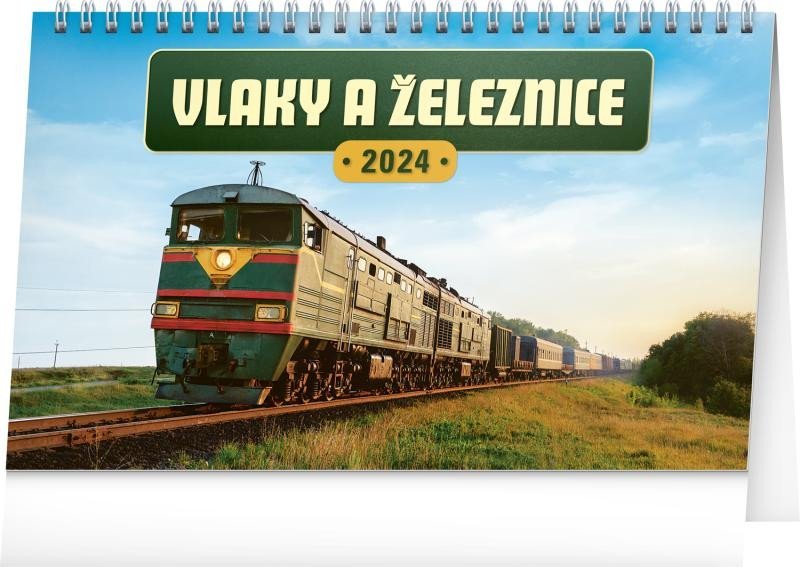 Kalendář 2024 stolní: Vlaky a železnice, 23,1 × 14,5 cm (česky)