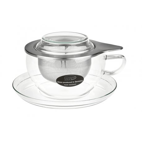 Skleněný šálek s podšálkem, pokličkou a nerezovým sítkem. Ideální pro použití v mikrovlné troubě a na plynových či elektrických sporácích. Objem 0,4 l. Vhodné do myčky na nádobí. prečítať celé