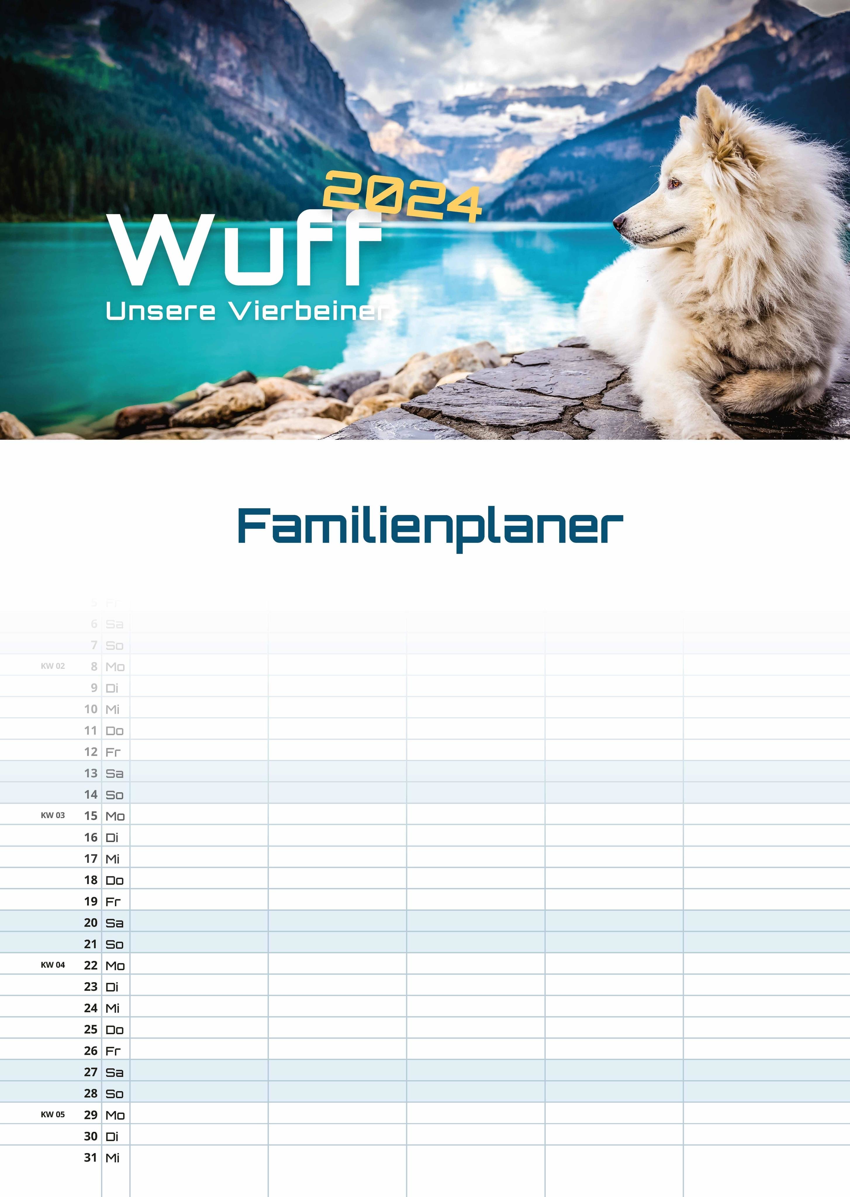 Wuff - Unsere Vierbeiner - Der Hundekalender- 2024 - Kalender DIN A3 (Familien-/Terminplaner) (německy)