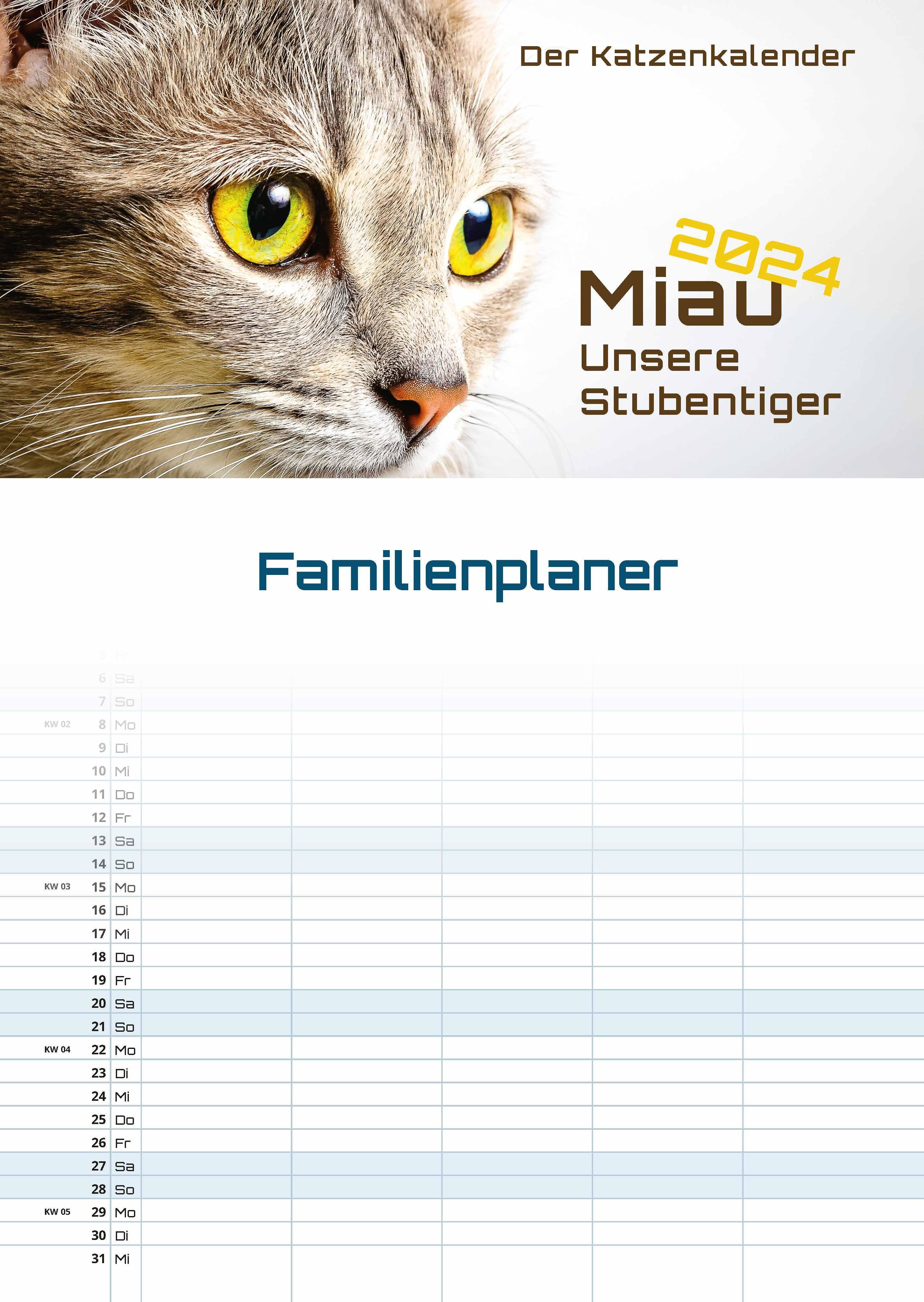 Miau - Unsere Stubentiger - Der Katzenkalender - 2024 - Kalender DIN A3 (Familien-/Terminplaner) (německy)