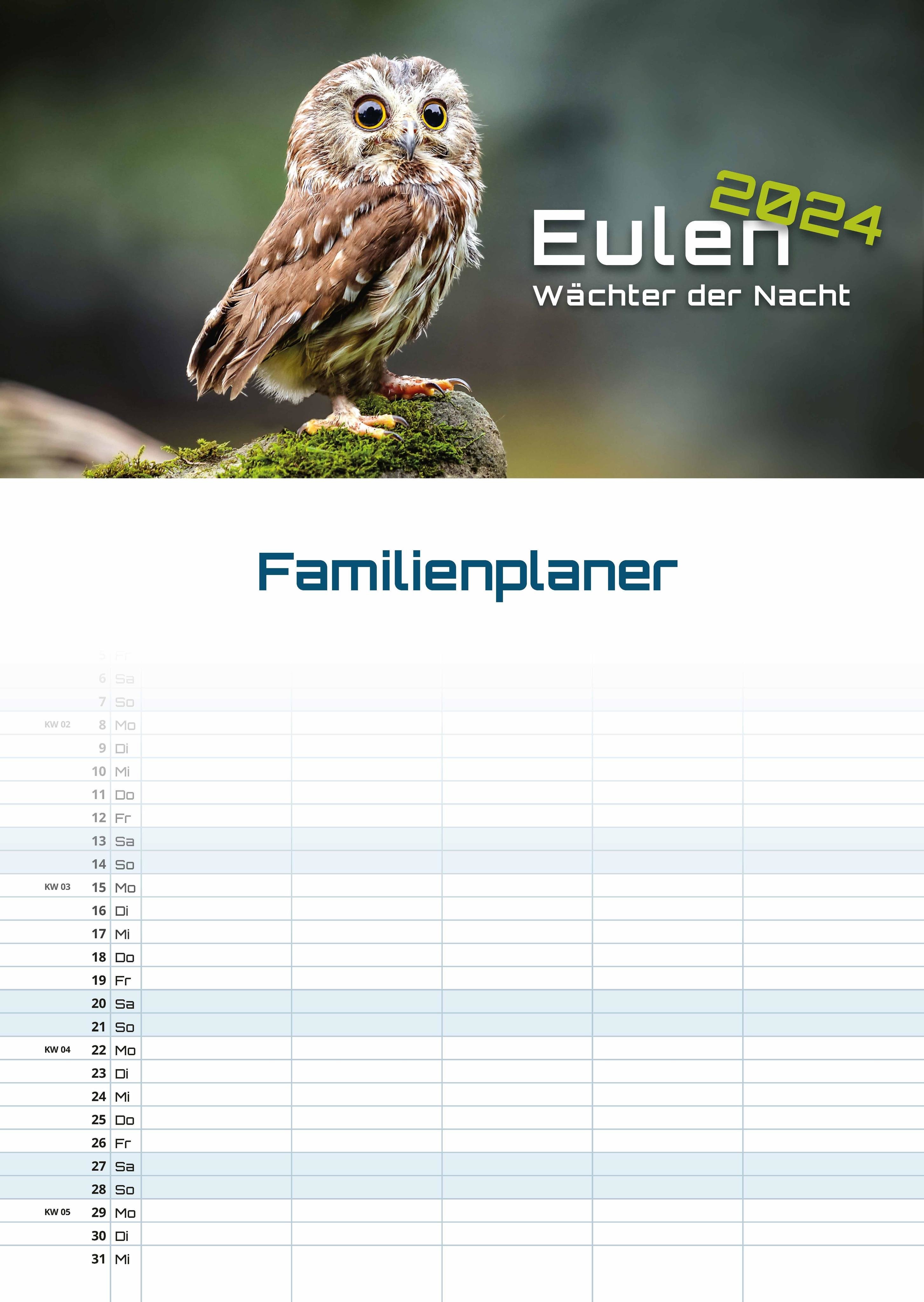 Eulen - Wächter der Nacht - 2024 - Kalender DIN A3 (Familien-/Terminplaner) (německy)