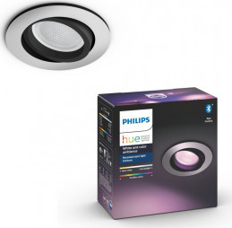 Kulaté hliníkové vestavné svítidlo Centura z kolekce chytrého domácího osvětlení Bluetooth Philips Hue ukrývá patici GU10 a je dodáváno se smart LED žárovkou Hue White and Color Ambiance, díky níž jednoduše změníte světlo v místnosti podle vašich aktuálních potřeb, příležitosti a nálady. Bílý...