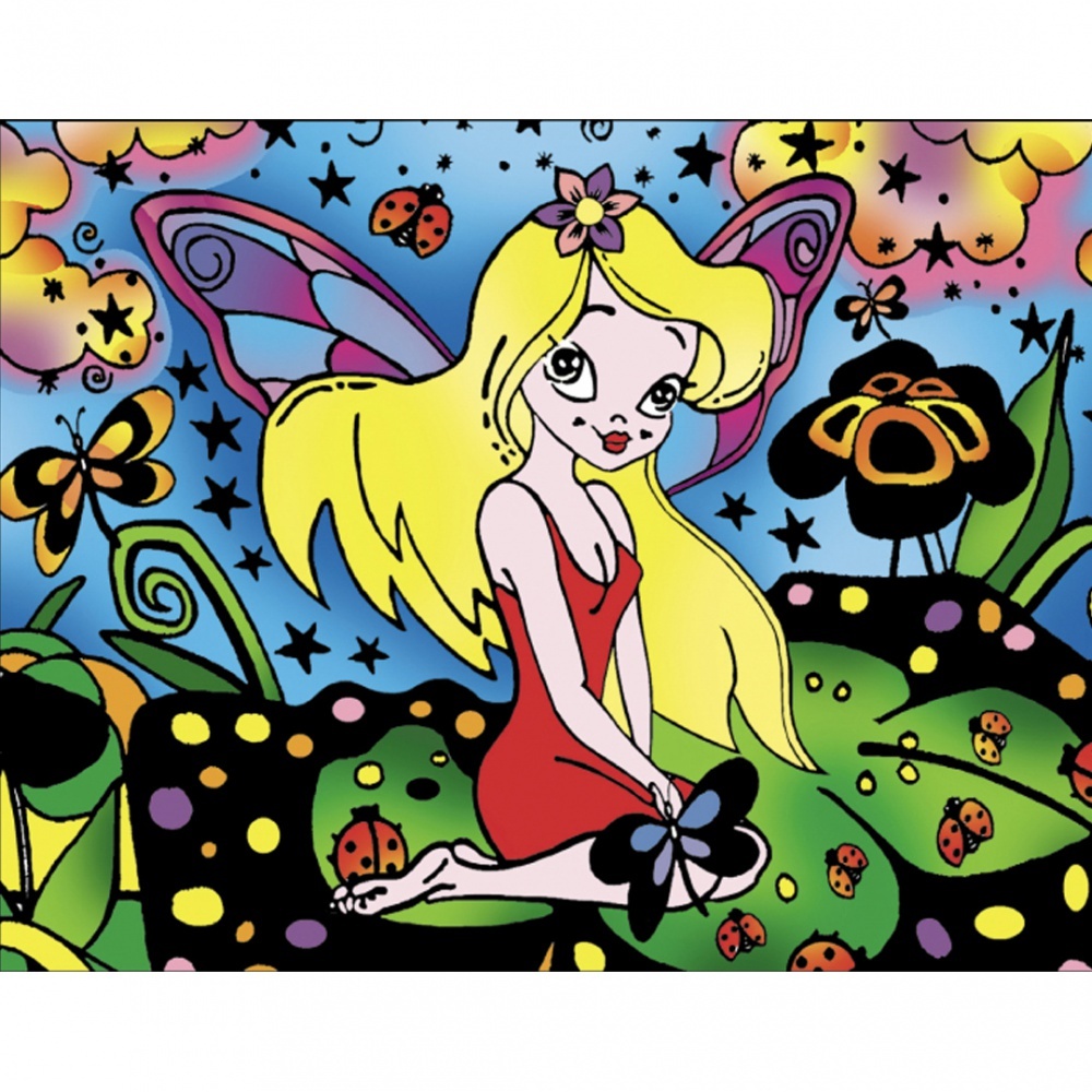 SAMETOVÝ OBRÁZEK VÍLA 21X29,7 CM.Sametový obrázek k vybarvení, motiv Víla. Vybarvovací šablona je ze sametu, který usnadňuje vybarvení. Obrázek můžete vybarvit fixami, pastelkami nebo voskovkami. Okraje motivu jsou přesně vymezeny sametem a zabraňují přetahování okrajů.Obrázek je možné vybarvit...