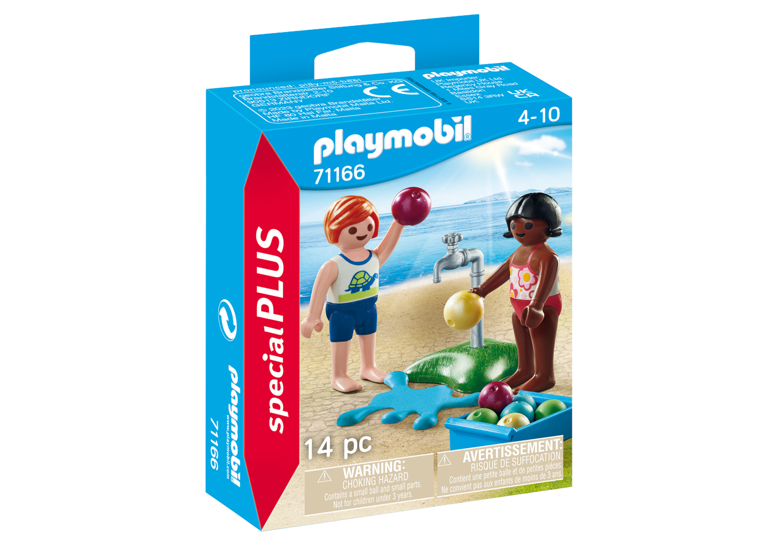 Sada obsahuje dvě dětské figurky, kohoutek, louži s vodou, nádobu a osm vodních balónků. Vodní balonky mohou děti držet v ruce. Počet dílků: 14. Rozměry balení: 12x9,3x3,8cm. Věk: 4+ prečítať celé