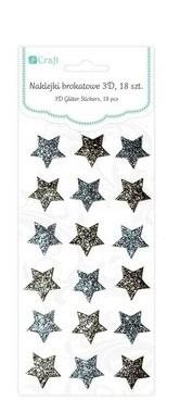 Naklejki brokatowe 3D gwiazdki 18szt