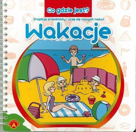 Co gdzie jest? Wakacje. ,, Co gdzie jest' to seria książeczek uczących dzieci poznawania i wskazywania obiektów, które spotykamy niemal codziennie. Dzięki temu dzieci uczą się nowych wyrazów, utrwalają te już znane, rozwijają zdolności poznawcze, uczą się odszukiwać jednakowe elementy, a także nazywać nowe przedmioty