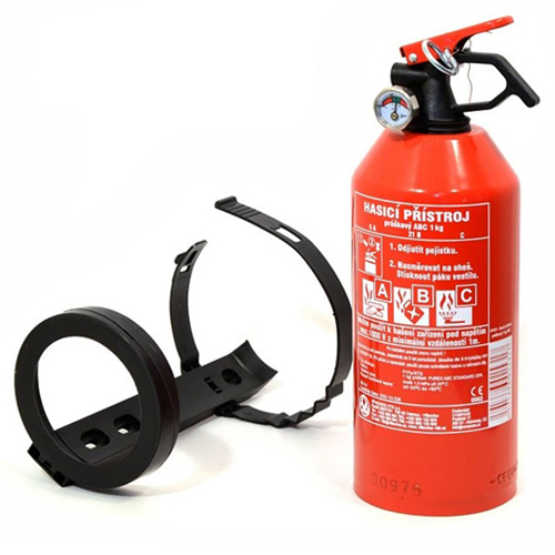 Hasicí přístroj práškový 1kg. Vhodný do auta - osobních automobilů, díky praktickému držáku a manometru. Je vhodný všude tam, kde nesmí dojít k poškození vodou nebo pěnou. Tento hasící přístroj lze použít k hašení zařízení pod napětím max. do 1000V z min. vzdálenosti 1 m. Hasicí přístroj je vybaven manometrem a držákem pro snadné uchycení.