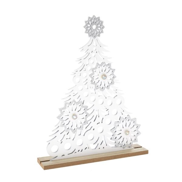 Dřevěná dekorace - vánoční stromek, bílá, 18/36