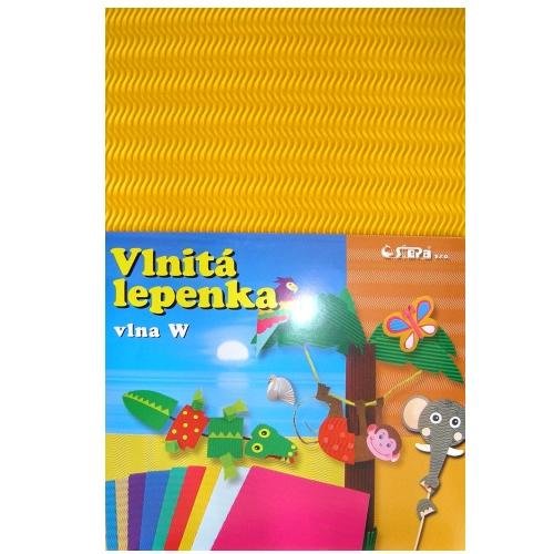 Barevná lepenka - 10 archů v balení.Plošná hmotnost: 260 g/m2 Druh vlnění: W-Welle (zvlněná vlna) Formát: 34,5 x 24,5 cm.Barva žlutá.Barevná vlnitá lepenka má širokou škálu výtvarného využití. Pro svou barevnost, pevnost a plastičnost je vhodná k dekoračním účelům, pro výtvarné umění apod.