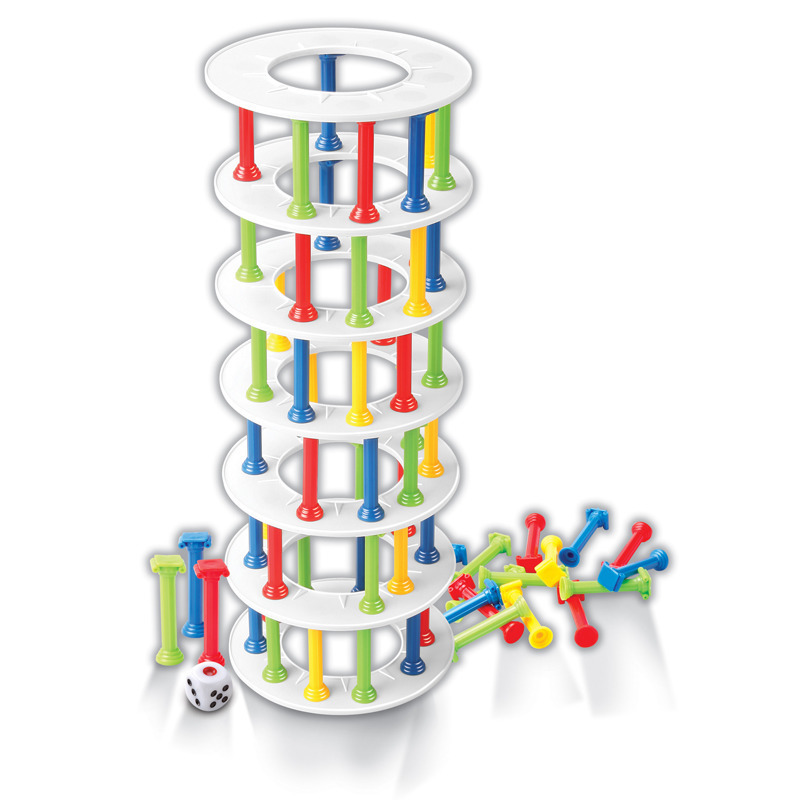 Nenech věž spadnout, jinak prohráváš! Opatrně vytahuj sloupek posloupku. Na začátku si vyber barvu, která bude jen tvá. Věž má až6 pater. Na každém patře by jsi měl mít umístěný sloup se svou barvou.Po hodu kostkou se dozvíš, z jakého patra by měl sloup zmizet. Vítězem sestavá hráč, který byjme...