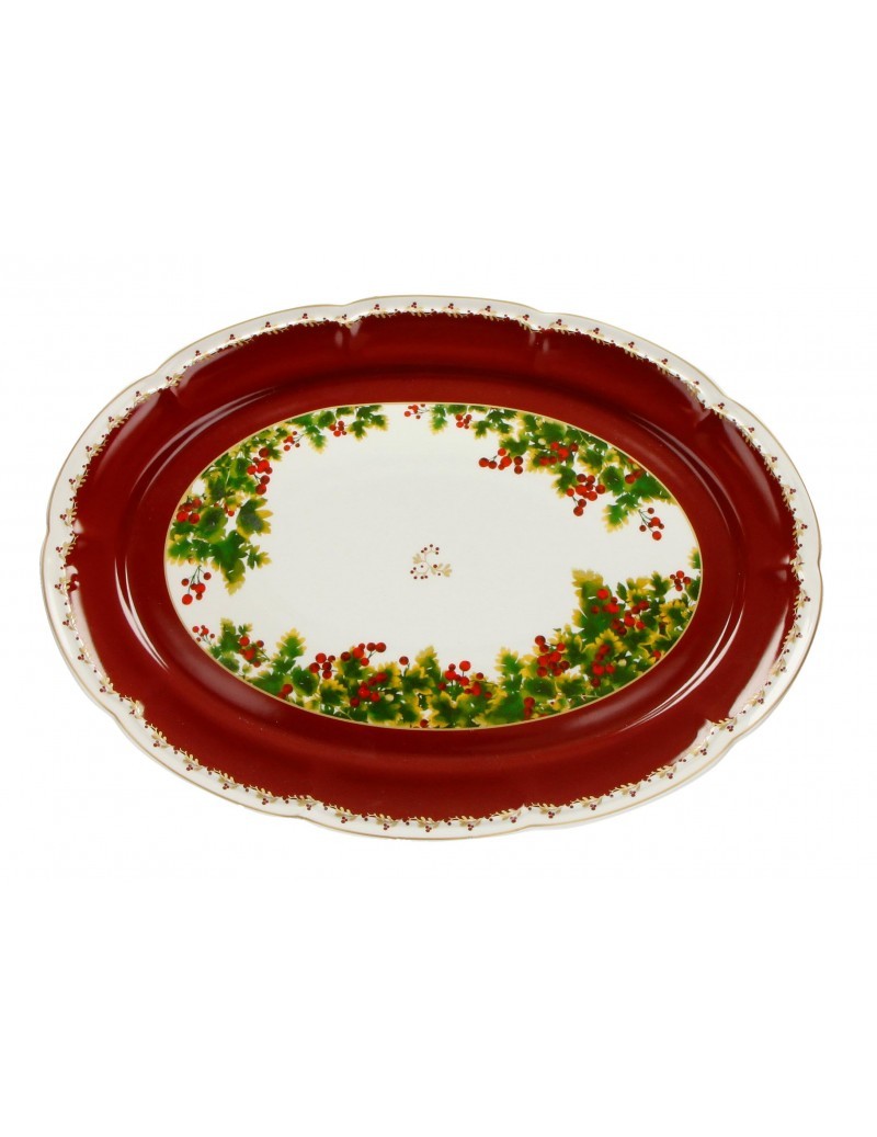 Servírovací oválný tác z porcelánu v bílé/červené/zelené barvě. Ozdobí váš slavnostní stůl nejen nejen na Vánoce.