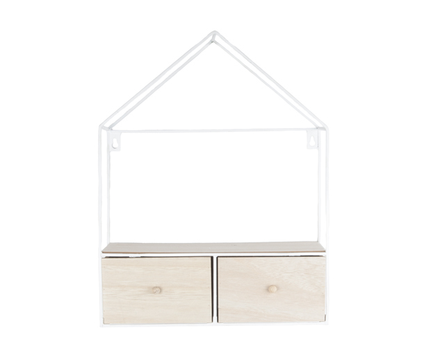 Nástěnná skříňka se dvěmi dřevěnými zásuvkami.