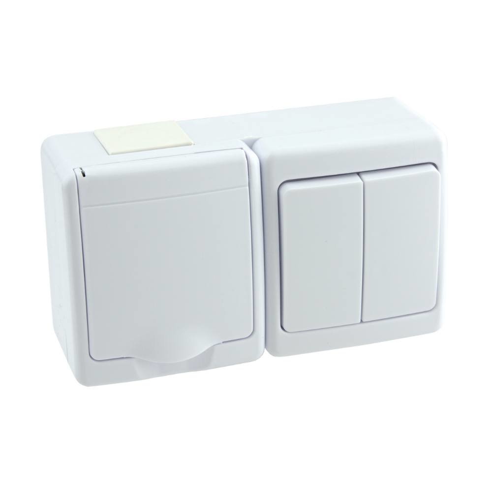 Zásuvka s přepínačem dvojitým č.5 na omítku IP44 bílá