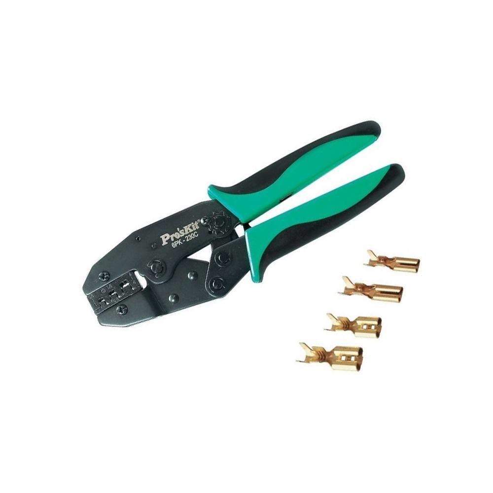 Krimpovací nástroj 6PK-230C- Možnost výměny čelistí, upevnění šroubky- Nastavení tlaku pro krimpování- Uvolňovací mechanismus ráčny- Mechanismus šetřící sílu při stisku- Povrchová úprava: černý oxid- Materiál: střední uhlíková ocel S45C- Materiál čelistí: chrom-molybdenová slitina ocelí AISI(SAE)...