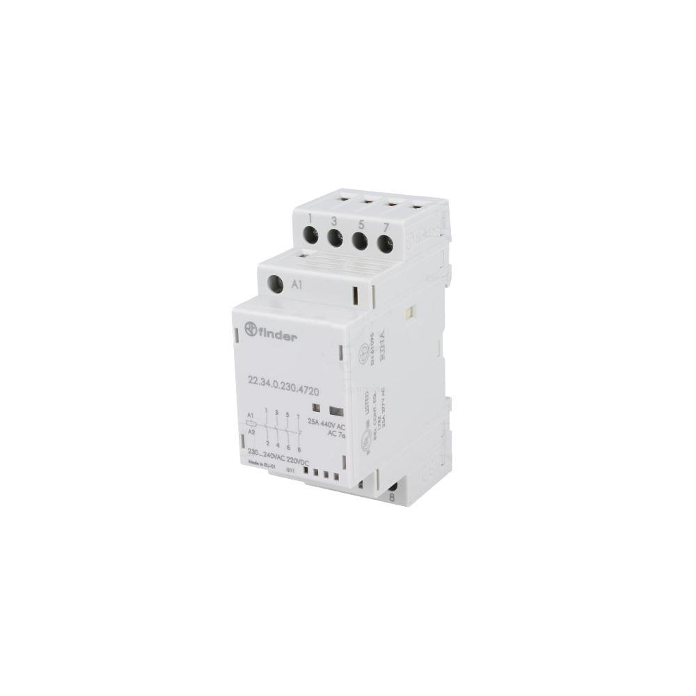 Modulový stykač na DIN lištu, 230V AC, 4-pólový, 3-spínací, 1-rozpínacíModulový stykač je určen pro spínání elektrických obvodů, zejména odporových zátěží,třífázových asynchronních motorů atd.Technické parametry:Jmenovité napětí cívky 230V ACKonfigurace kontaktů: 3-spínací,1-rozpínací; 3PST NO +...