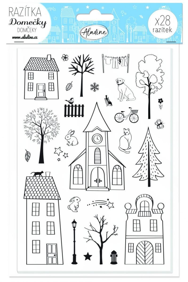 Gumová razítka na pěnové hmotě s oblíbenými motivy domečků. Ideální na celoroční i adventní tvoření: výrobu přání, nápaditých dekorací, ozdob, svícnů, dárkové tašky, visačky. Razítka se hodí na dekoraci papíru, kartonu, dřeva, textilu, jsou hvodné i do keramiky a dalších hmot. Sada obsahuje 28 ks razítek.
