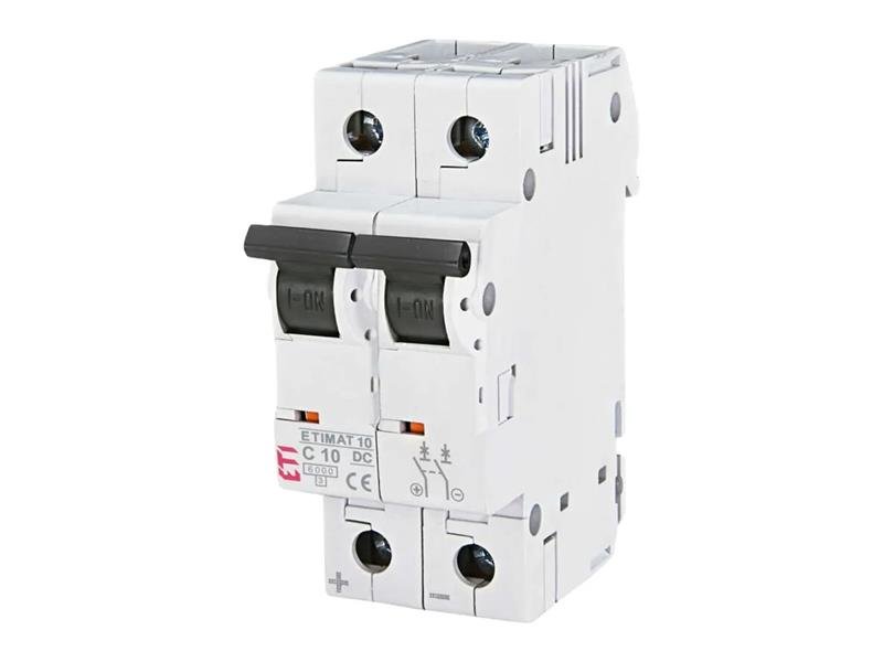 Stejnosměrný 2-pólový jistič s jmenovitým proudem 10A, zkratová odolnost 6kA. Slouží k jištění kabelů proti přetížení a zkratu.