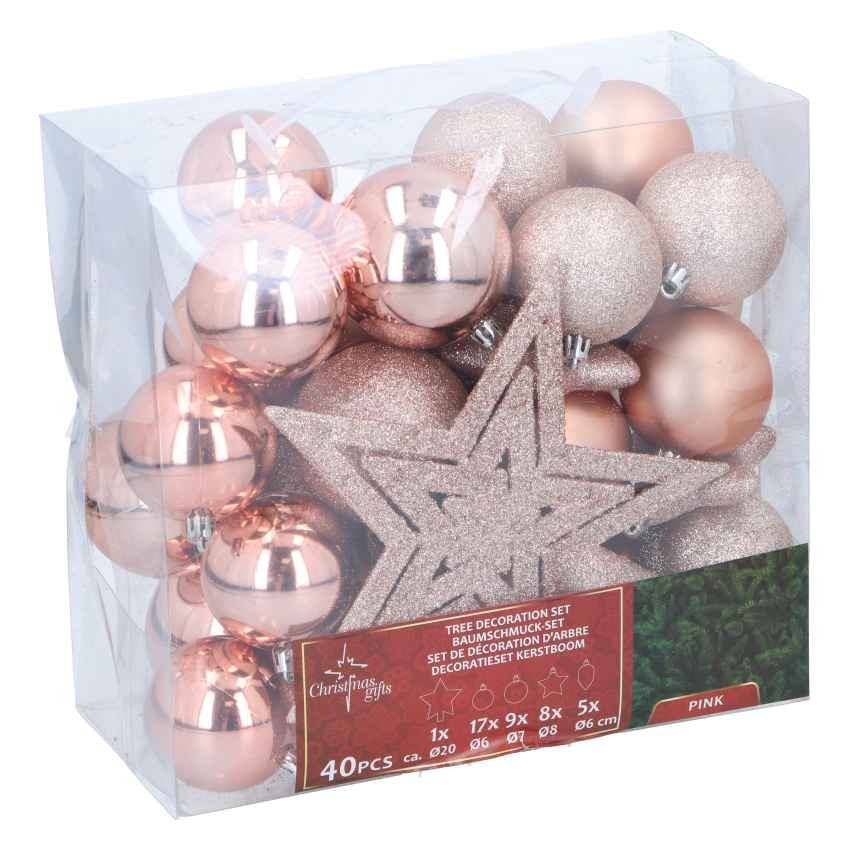 Vánoční ozdoby na stromeček sada 40 ks růžová