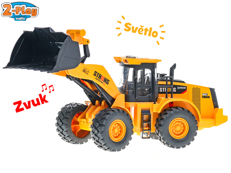 2-Play Traffic bagr nakladač 30cm na setrvačník na baterie se světlem a zvukem v krabičce