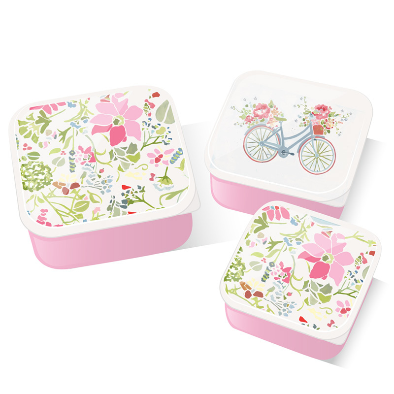 Sada 3 krabiček/nádob na jídlo M/L/XL - Růžové květy, design Julie Dodsworth