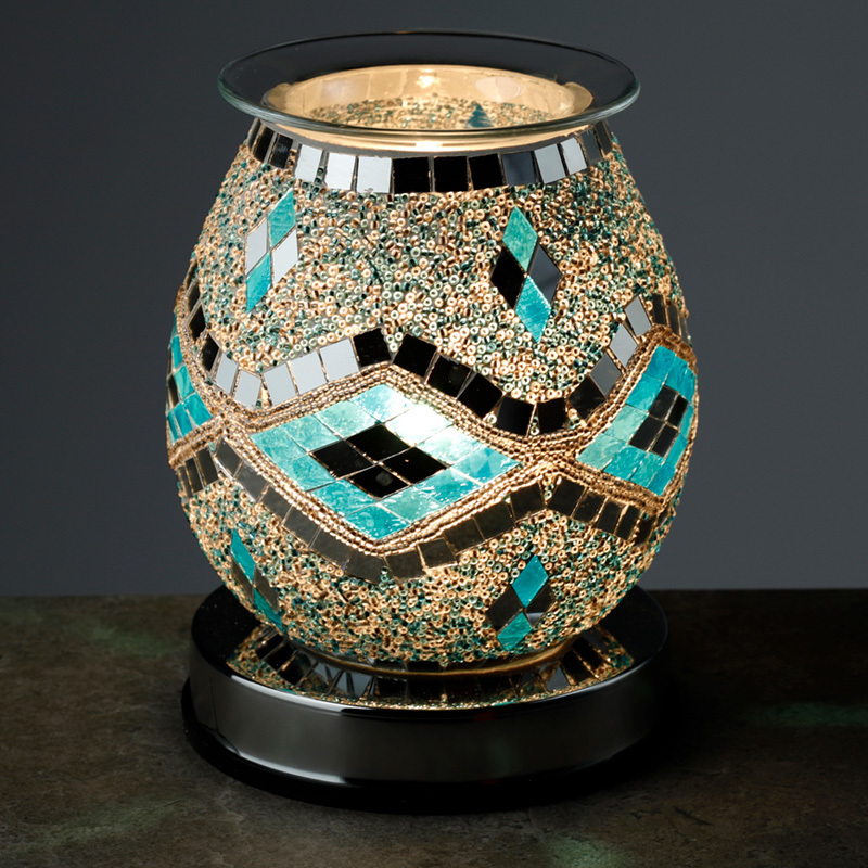 Dotyková aromalampa na vosk- Modrostříbrná zrcadlová mozaika- EU zástrčka